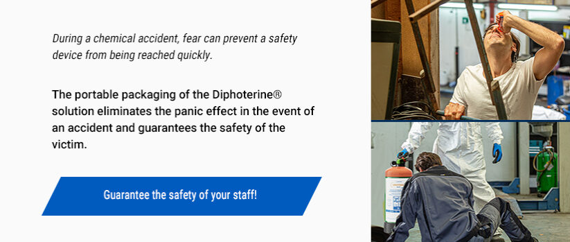 Home HSE Solutions: Managing the chemical risk through prevention and first aid training Previous Next Video of the month Online training Understanding the chemical risk through training Our training sessions Assessment and prevention E-Learning by PREVOR Our Safety-Environment Conferences Chemical risk, from physico chemical to toxicology Our library Scientific knowledge and data Prometra Database PREVOR Literature Articles Responding to chemical risks with first aid solutions DIPHOTERINE® solution to manage chemical burns Rinsing the Eye Washing the Body Decontamination floors and utensils Discover our entire “environment” range